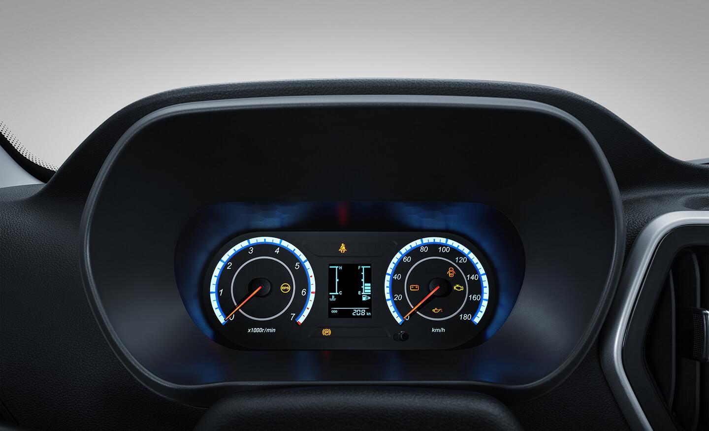 Cụm đồng hồ công tơ mét dạng Analog trực quan và sinh động. Phối hợp với đèn nền, tạo nên vẻ đẹp sang trọng.