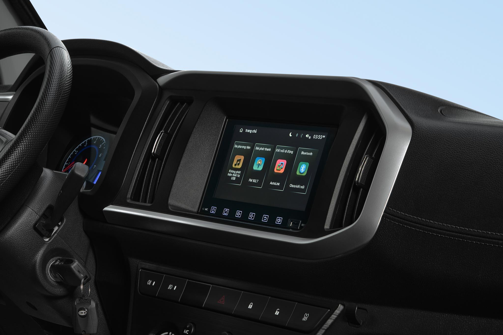 Màn hình giải trí trung tâm 7", hỗ trợ kết nối Autolink, tích hợp camera lùi mở rộng quan sát.